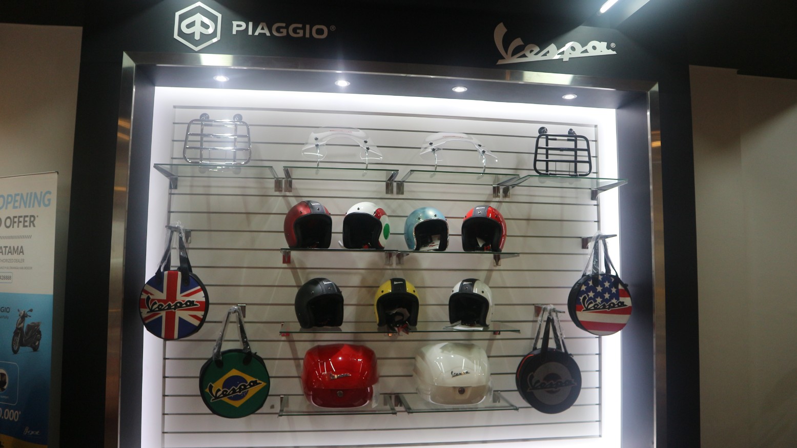 Berdiri di atas lahan seluas 128 m2, konsep ini memungkinkan para pelanggan untuk mengetahui lebih jauh mengenai produk Piaggio sekaligus menikmati area khusus aksesoris resmi, bengkel, serta fasilitas lounge. Di area lounge, konsumen dapat berbagi informasi sekaligus pengalaman pribadi mereka sebagai pengendara sepeda motor dengan para ahli produk di diler.