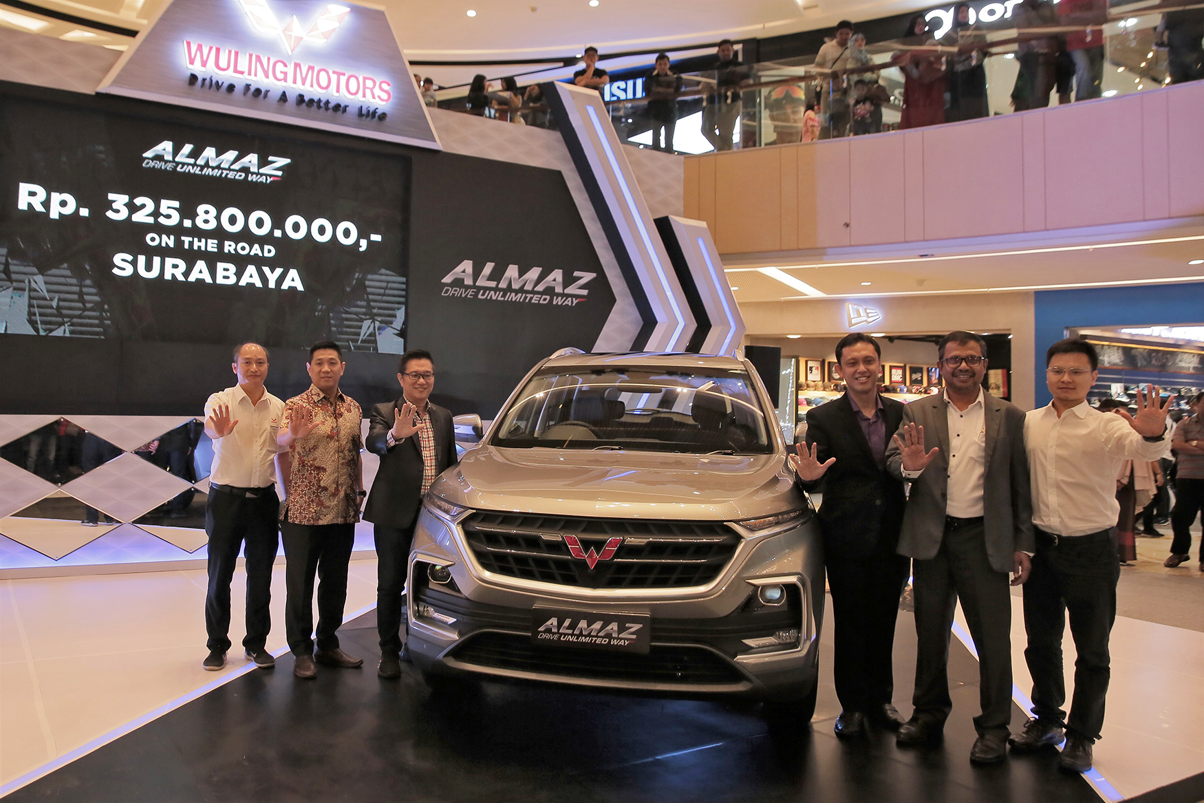 iamautomodified.com, SURABAYA – Wuling Motors, melalui mitra diler di Surabaya yakni PT Arista Jaya Lestari dan PT Putra Perdana Indoniaga berhasil merilis Smart Technology SUV, Almaz ‘Drive Unlimited Way’ di Tunjungan Plaza 6. Almaz meluncur dengan harga on the road Rp 325,8 juta berlaku untuk wilayah Jawa Timur.