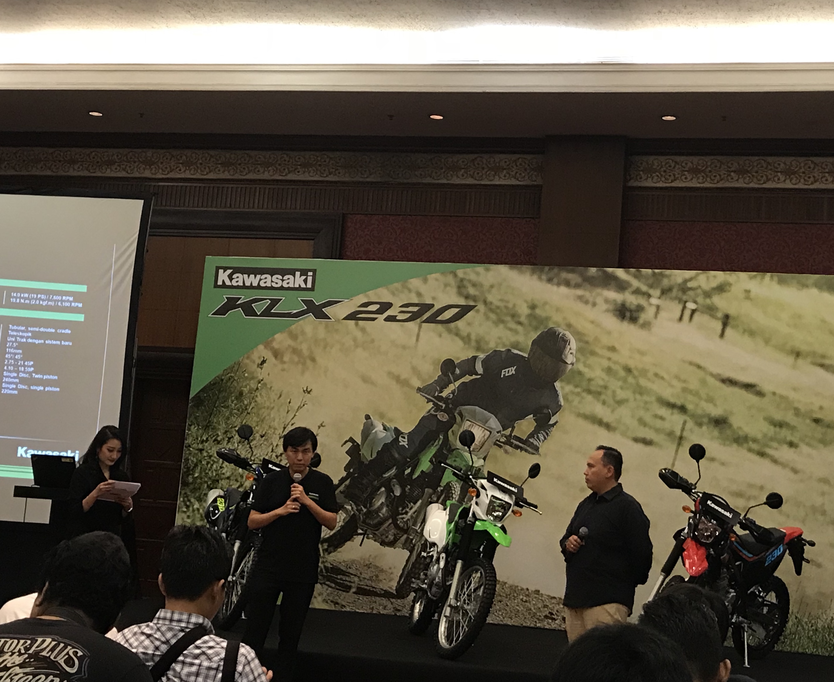 PT. Kawasaki Motor Indonesia (KMI) memperkenalkan 1 line-up barunya di event Jakarta Fair, tepat pada tanggal 22 Mei 2019, di Jiexpo Kemayoran. Motor yang diperkenalkan adalah Kawasaki KLX230, motor berkonsep dirt bike dengan desain dual purpose, bertenaga, ringan, dan sangat mudah bermanuver.