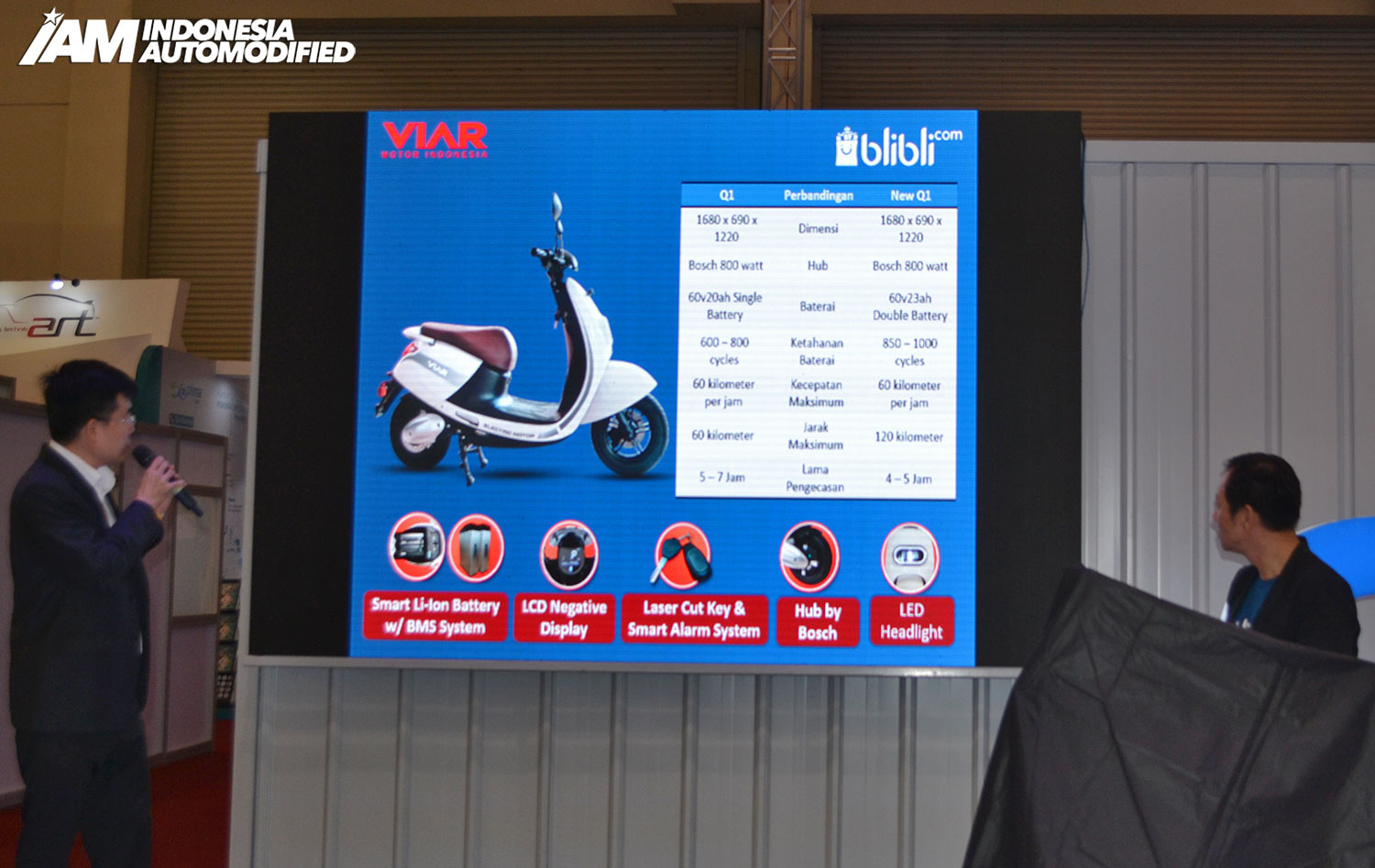 All New Viar Q1 dibanderol dengan harga Rp. 18,5 juta dan hadir dengan warna Creamy White. Selama berlangsungnya pameran GIIAS 2019, PT Triangle Motorindo bekerjasama dengan Blibli.com untuk pemesanan unit secara online maupun offline di booth Blibli.com di hall 10 pelanggan akan mendapatkan diskon sebesar Rp 500 ribu dan merchandise spesial.