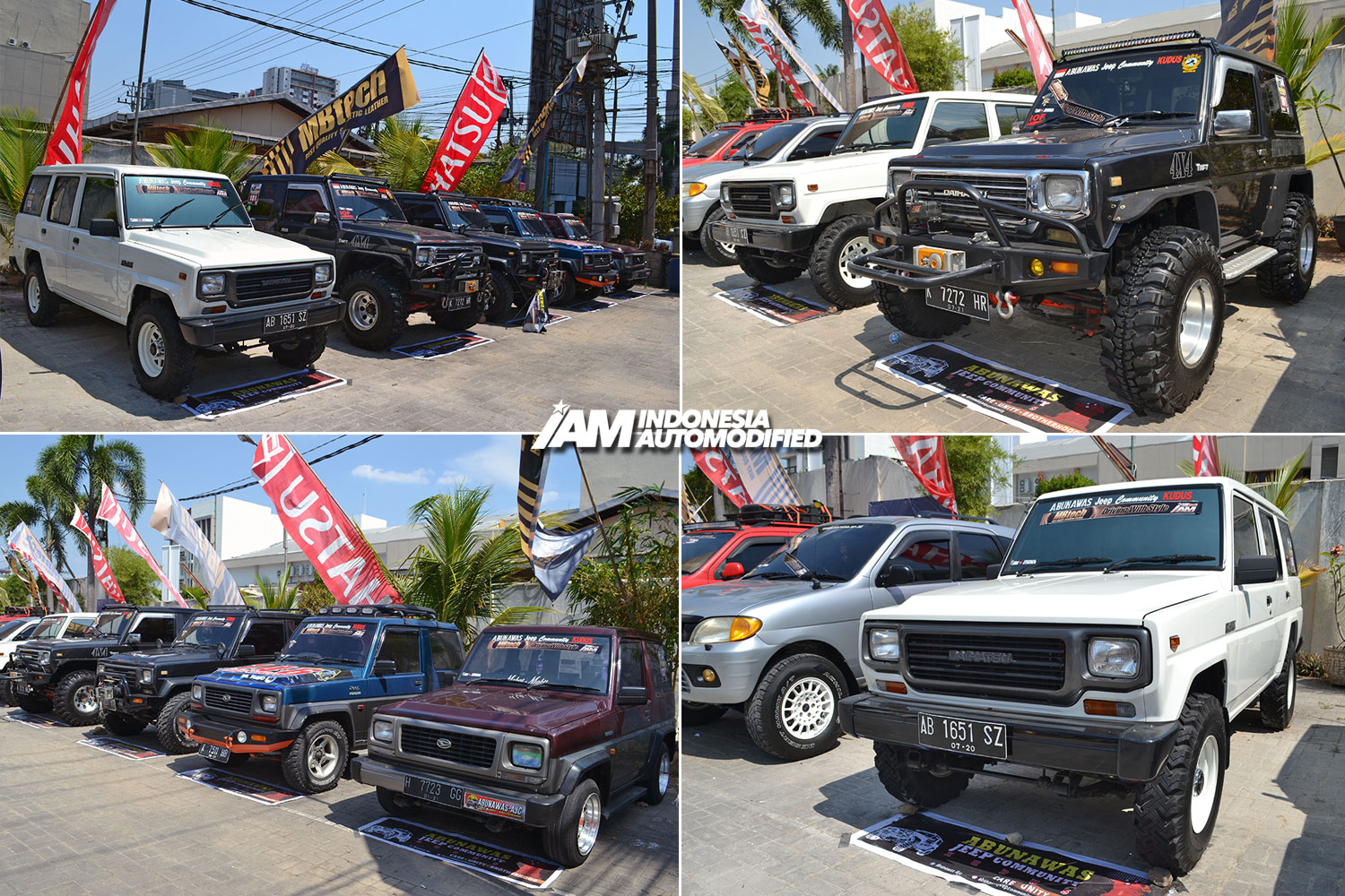 iamautomodified.com, SEMARANG – Komunitas pecinta dan penggemar mobil Jeep jenis Daihatsu yang mengatasnamakan Abunawas Jeep Coomunity (AJC) turut berpartisipasi di ajang Indonesia Automodified (IAM) MBtech Semarang yang berlangsung di Majesty Convention Hall, Semarang-Jawa Tengah 5-6 Oktober 2019.