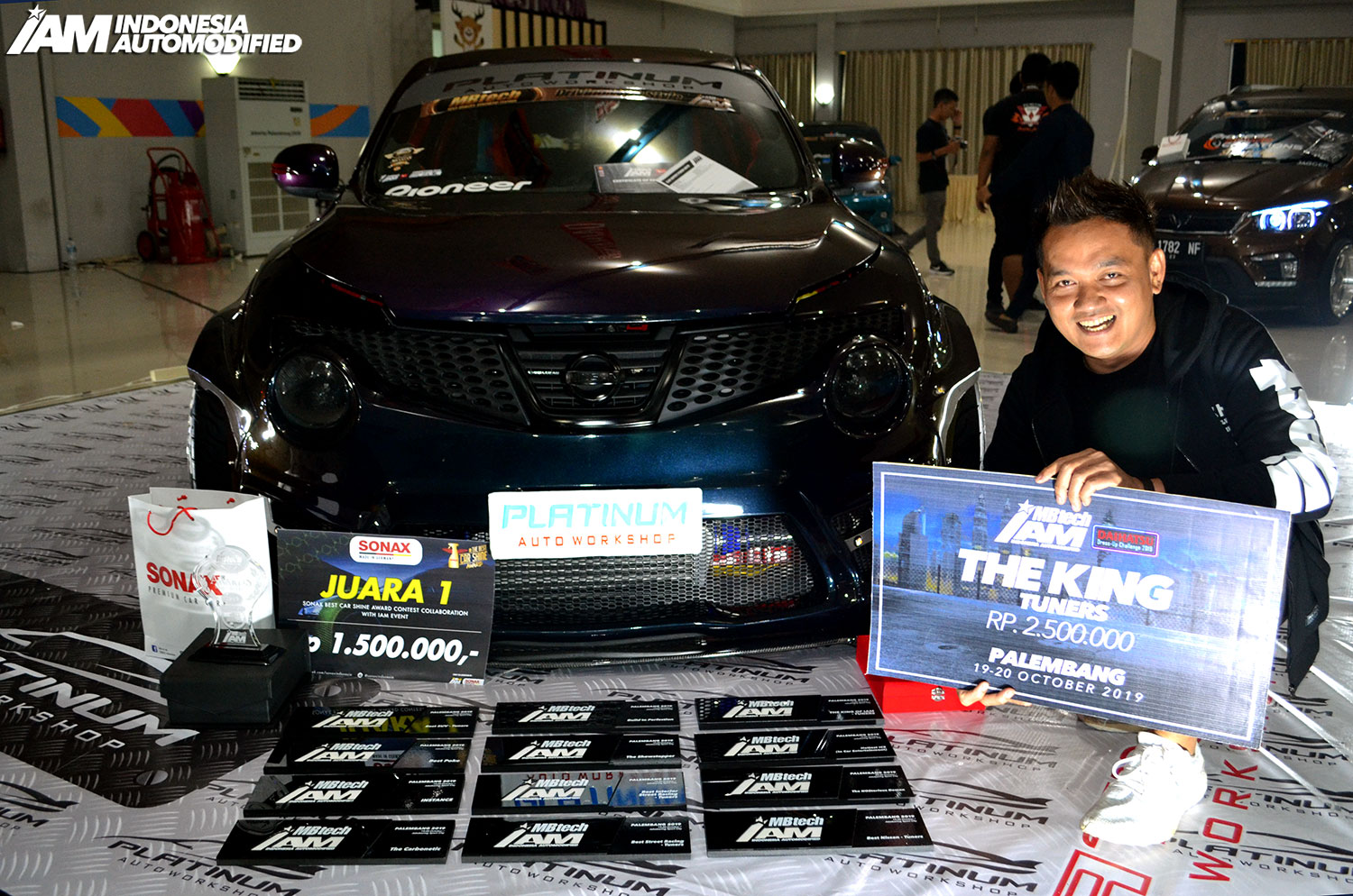 Meski baru pertamakali diterjunkan di IAM MBtech Palembang 2019 lalu, Nissan Juke ini sudah berhasil memborong sejumlah tropi bergengsi. Bahkan, lewat berbagai rombakan yang termaktub pada crossover tersebut, Tim Judge IAM menobatkan Juke ini dengan tropi King Tuners. SELAMAT!!!