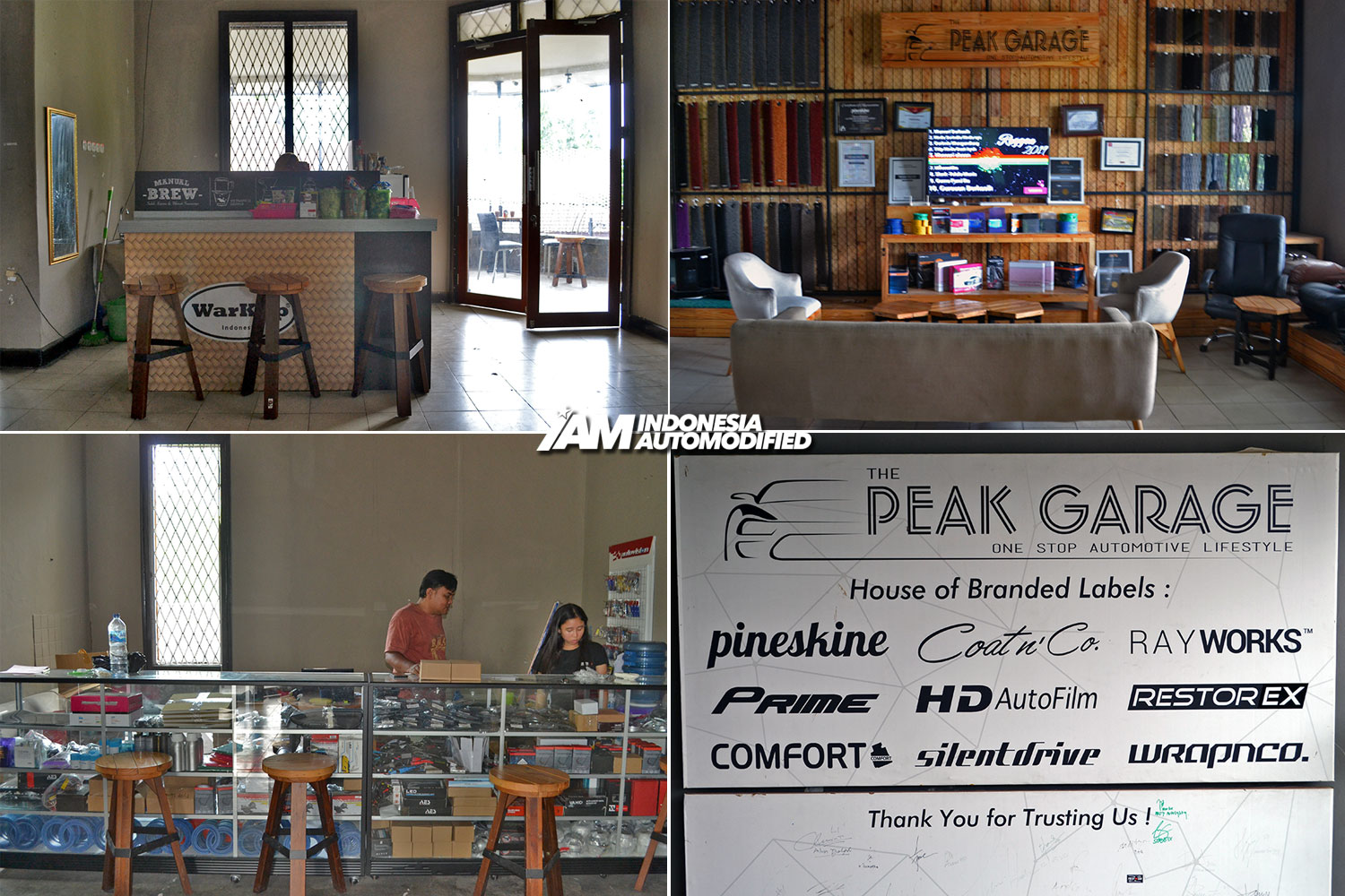 Workshop The Peak Garage di Semarang ini, lanjutnya, meliputi Pineskine untuk cover jok paten, Rayworks atau Yoong Motor Semarang untuk custom lampu, Coat ‘n’ Co divisi coating, Wrap ‘n’ Co yang melayani wrapping sticker, Silentdrive untuk pasang peredam dan RestorEX untuk urusan restorasi kaca dan lampu.