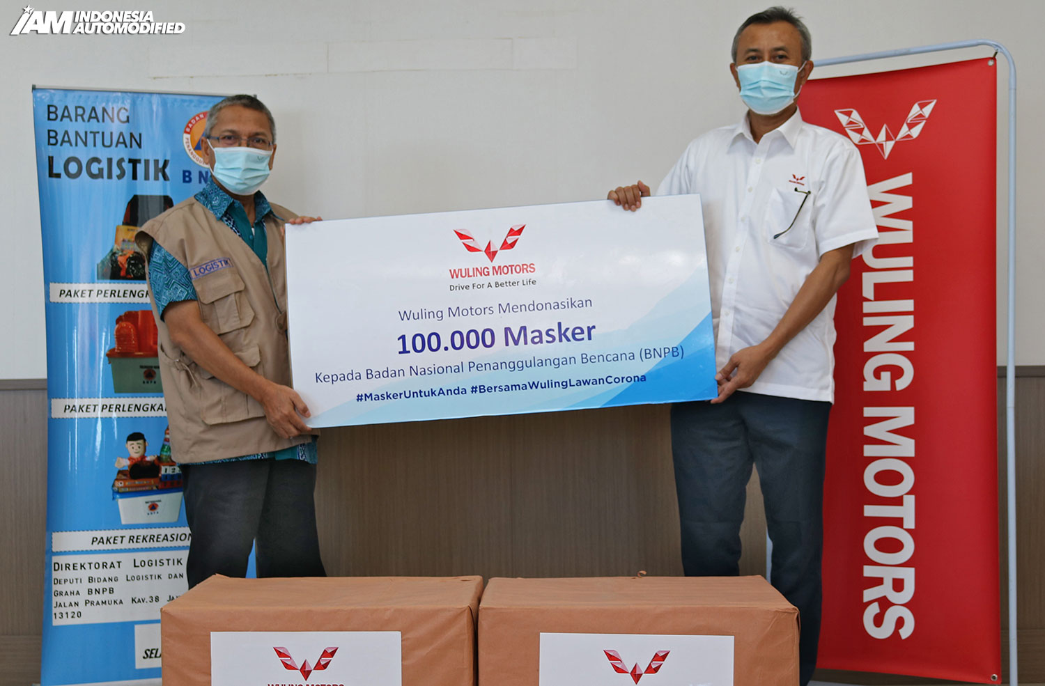 iamautomodified.com, JAKARTA – Wuling Motors (Wuling) kembali berkontribusi untuk memerangi virus corona di Tanah Air dengan mendonasikan sebanyak 100,000 masker non medis kepada Pemerintah Indonesia melalui Badan Nasional Penanggulangan Bencana (BNPB) yang ditetapkan sebagai Gugus Tugas Percepatan Penanganan Covid-19.