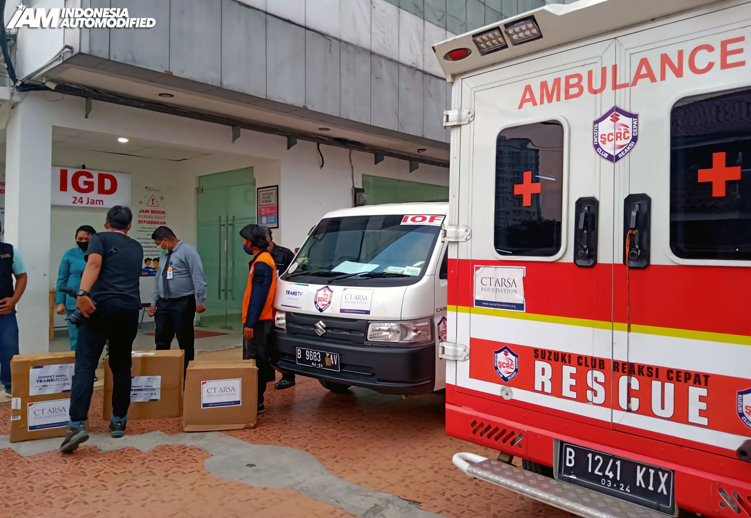 iamautomodified.com, JAKARTA – Sebagai wujud dari gerakan Suzuki Hygiene Commitment atau Komitmen Higenis Suzuki, PT Suzuki Indomobil Sales (SIS) berkoordinasi dengan Suzuki Club Reaksi Cepat (SCRC) untuk turut menyediakan kendaraan operasional berupa 1 unit New Carry Ambulance dan 1 unit Carry Pick Up untuk membantu pendistribusian donasi CT Arsa Foundation dan TRANS Group berupa Perlengkapan Tenaga Medis yaitu Alat Pelindung Diri (APD) dan masker medis N95.