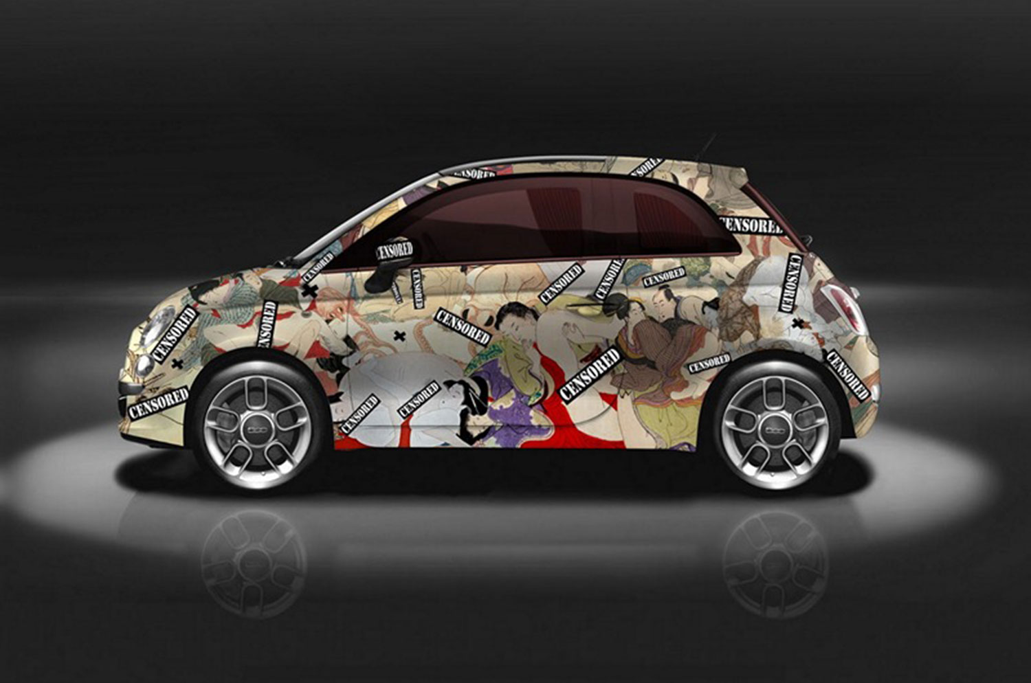 iamautomodified.com – Modifikasi ‘nyeleneh’ yang ditampilkan pada FIAT 500 ini mengundang respon para netizen, betapa tidak Garage Italia Customs menghadirkan gaya sensual serta vulgar pada mobil tersebut bertema Kamasutra.