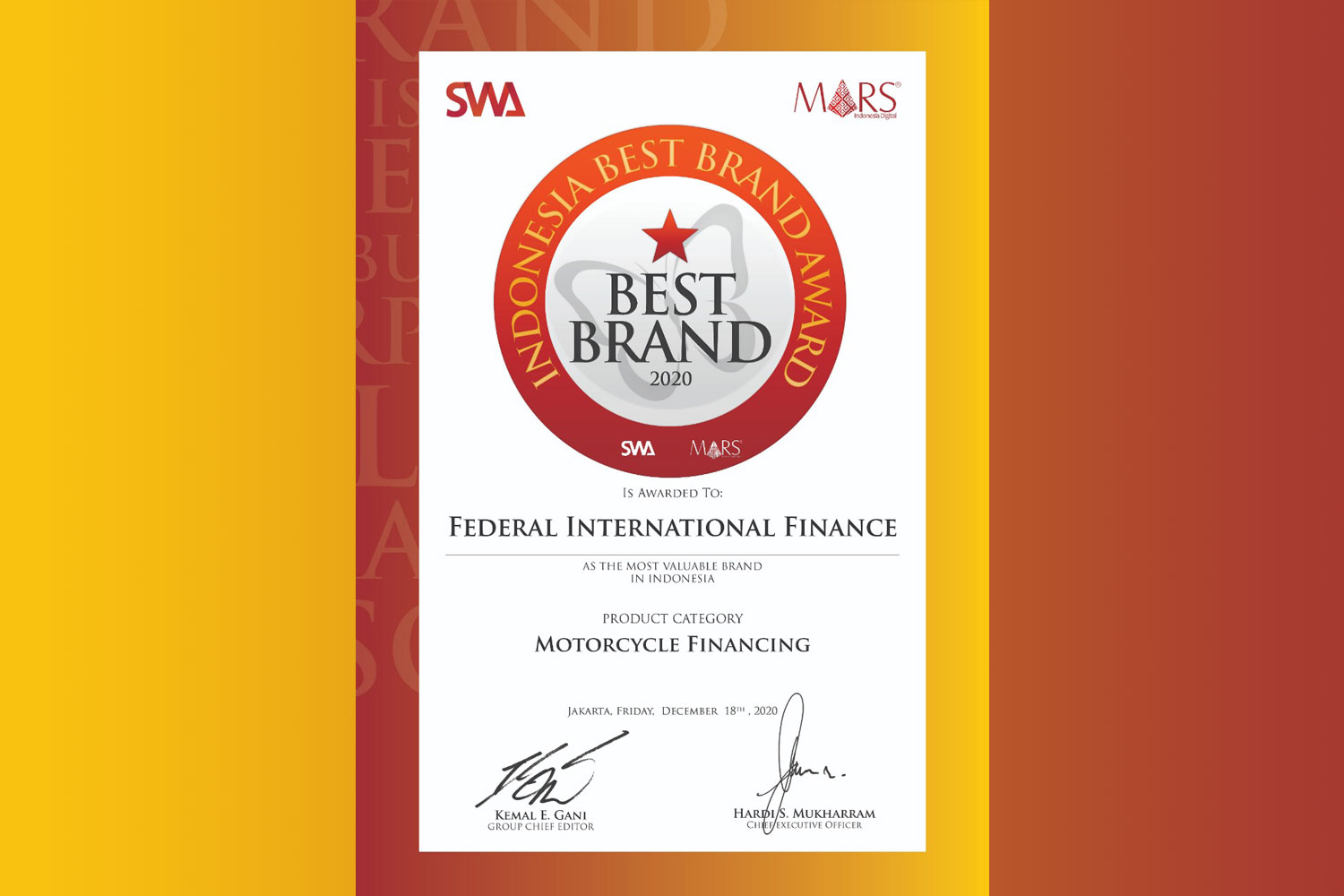Dalam kesempatan berbahagia ini FIFGROUP meraih Indonesian Best Brand Award (IBBA) 2020 sebagai The Most Valuable Brand In Indonesia pada kategori Kredit Kepemilikan Sepeda Motor.