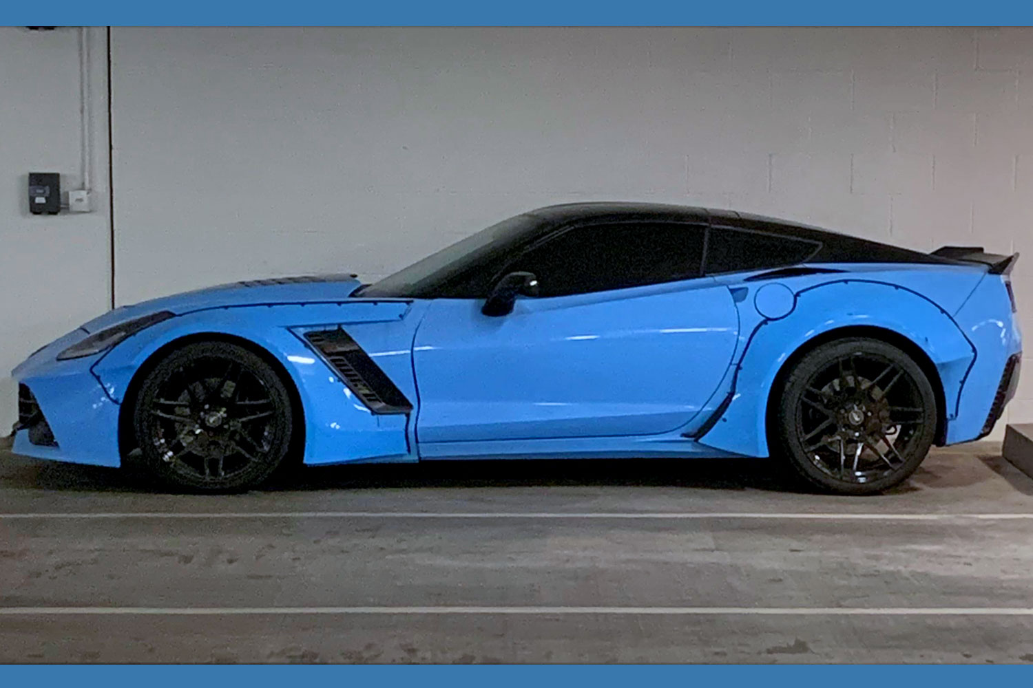 Jelas, pemilik mobil merasa tidak puas jika hanya berkeliling dengan Corvette baby blue dan berpikir itu akan menjadi lebih keren lagi dengan penambahan bodykit aftermarket.
