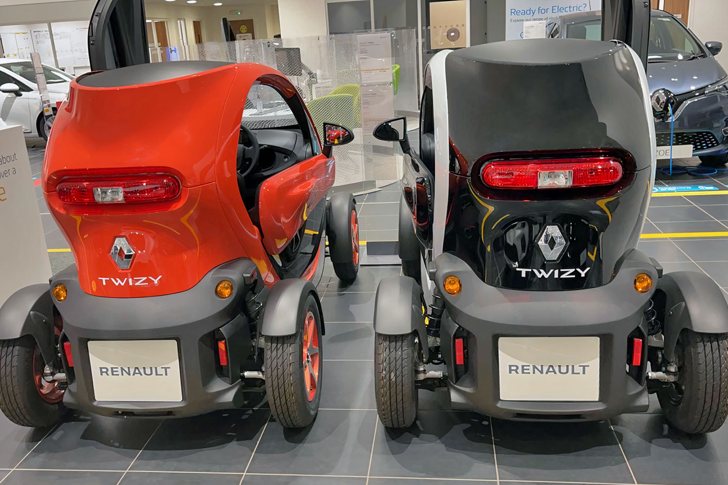 Sementara waktu pengisiannya juga termasuk cepat, sebab dari daya habis hingga penuh hanya membutuhkan waktu sekitar 2,5 jam untuk jarak tempuh 80 km. Menariknya, pengisian daya baterai Twizy bisa dikoneksikan dengan soket rumahan 220 volt tanpa harus menggunakan adaptor tambahan. Twizy hadir dalam 3 warna yaitu : Putih, Hitam, dan Orange yang dapat disesuaikan dengan selera konsumen.