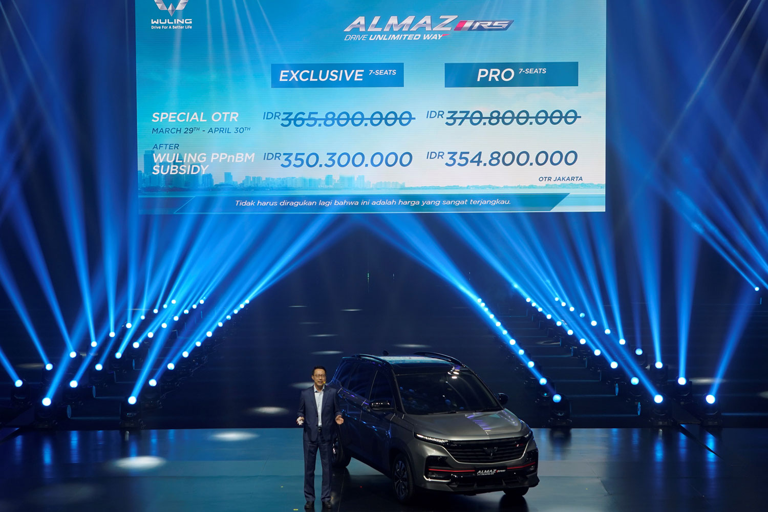 Mobil yang diklaim cerdas ini didukung oleh teknologi Wuling Interconnected Smart Ecosystem (WISE) dan dipasarkan dalam dua varian, yakni EX dan Pro dengan pilihan konfigurasi bangku 5-seater dan 7-seater.