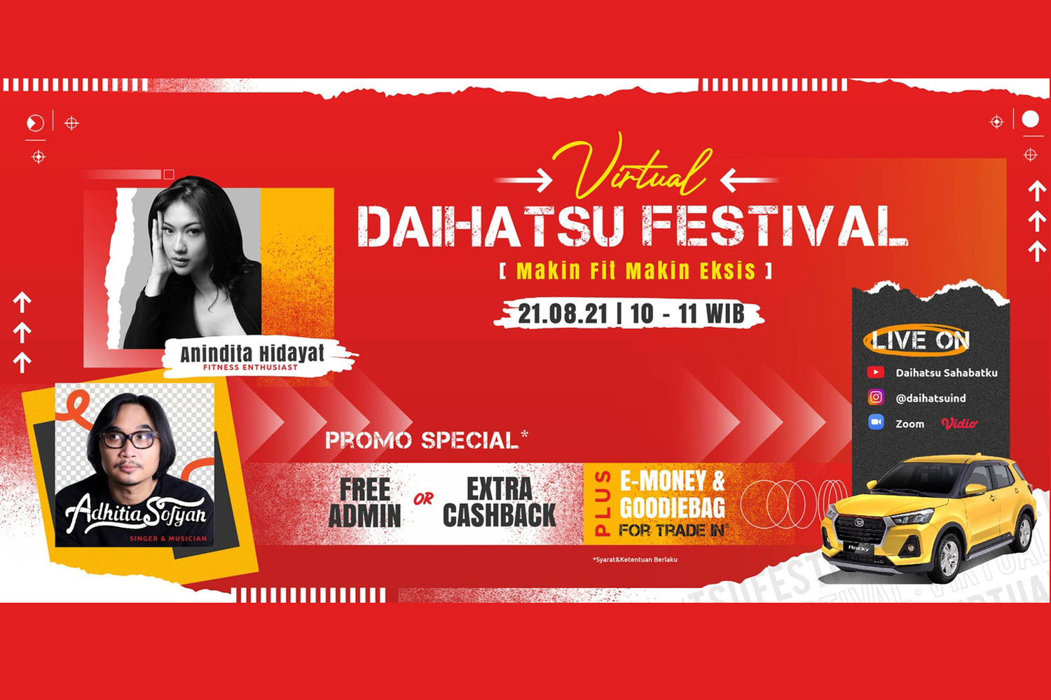 Selain program penjualan, Sahabat juga dapat menikmati beragam acara hiburan menarik dari Daihatsu di akhir pekan dengan tema ‘Makin Fit Makin Eksis’, melalui talkshow bersama Anindita Hidayat sebagai praktisi hidup sehat atau fitness enthusiast yang siap berikan berbagai tips agar tetap sehat, terutama di tengah pandemi, serta special perfomance dari Adhitia Sofyan.