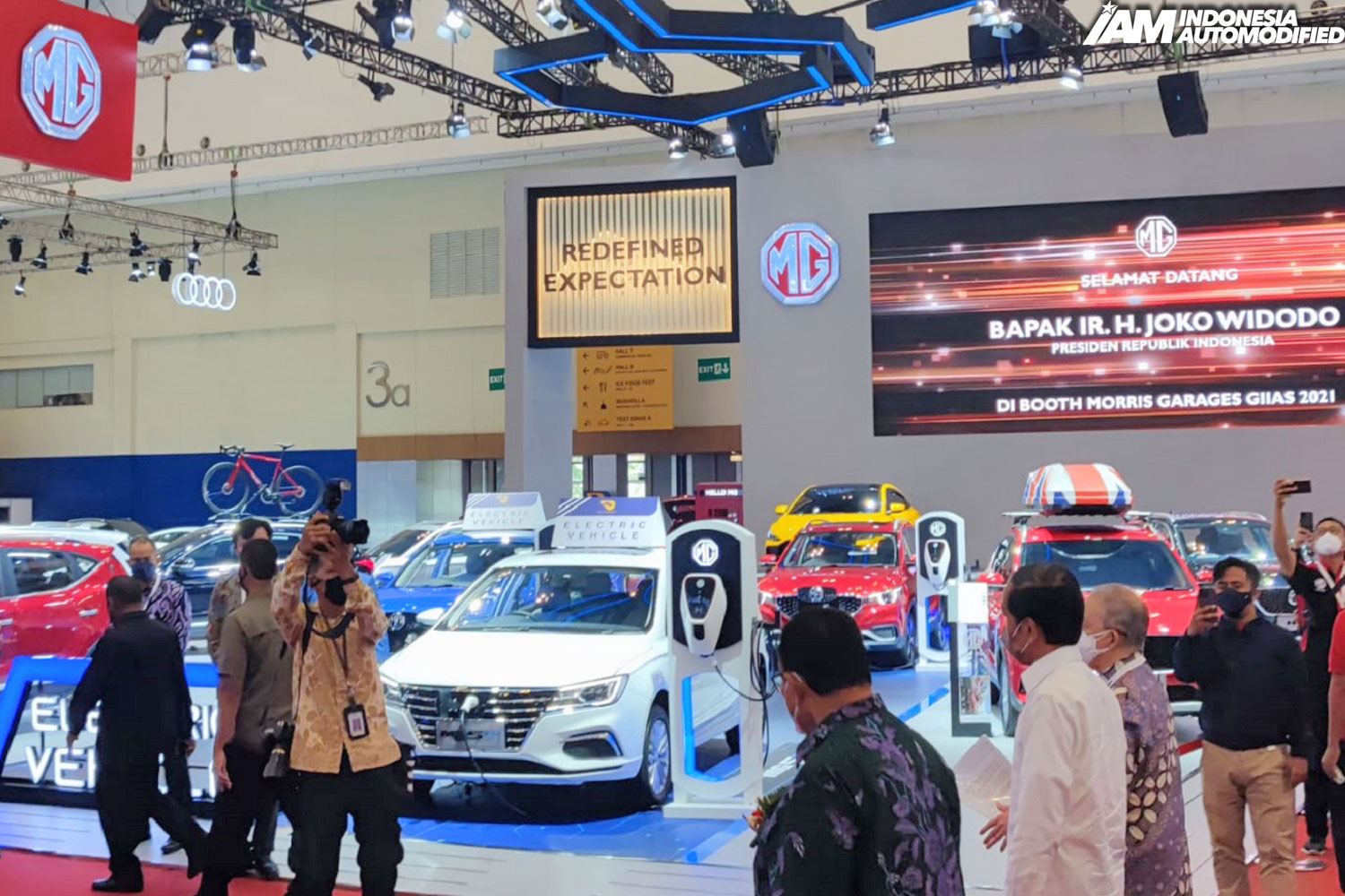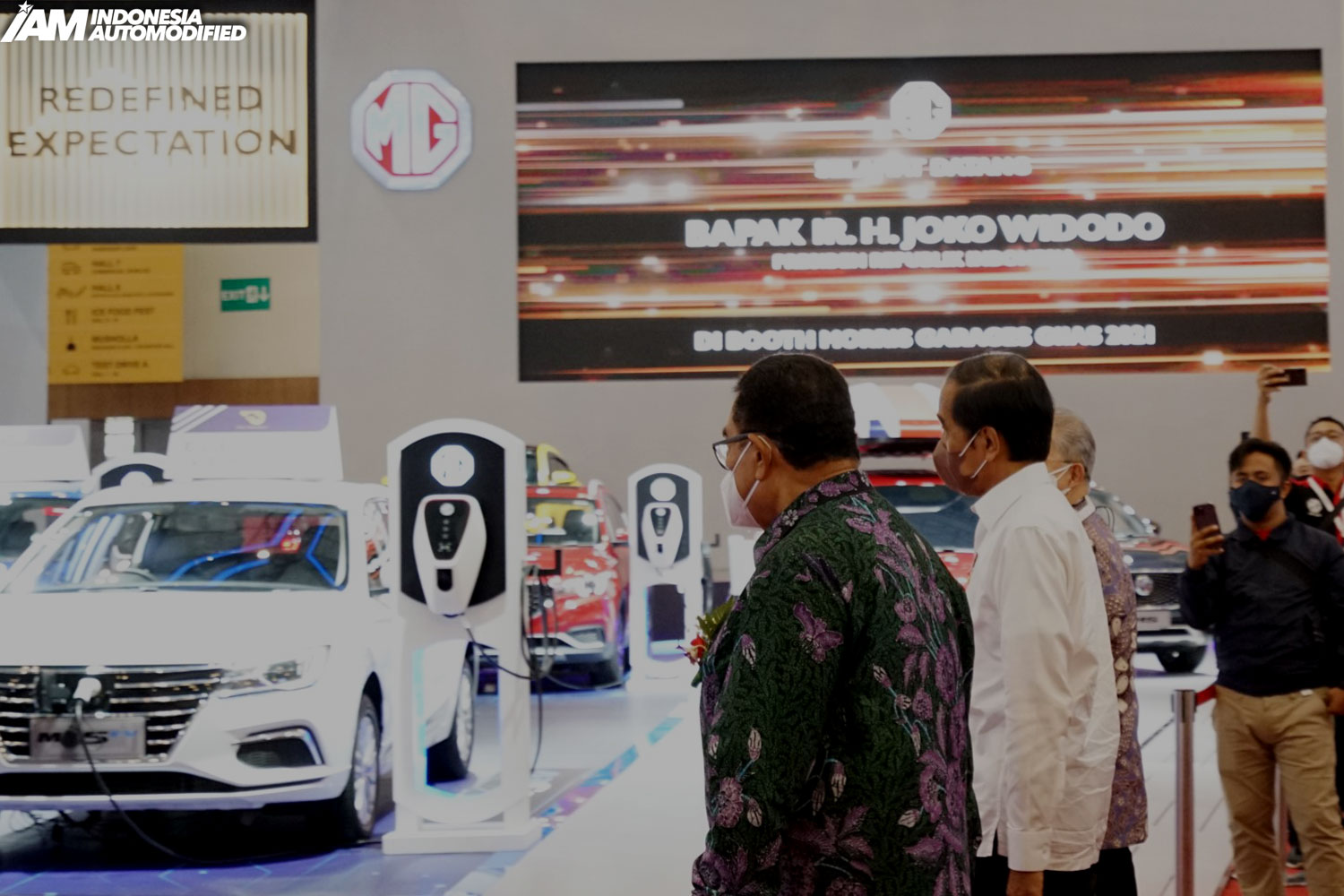 iamautomodified.com, TANGERANG – Presiden Joko Widodo disambut dengan penuh semangat oleh MG Motor Indonesia di Hall 3A di GIIAS 2021. Dalam kunjungannya di hari ketujuh, 17 November 2021, didampingi oleh sejumlah Menteri dan juga Bupati Tangerang, Presiden RI melirik sejumlah booth.