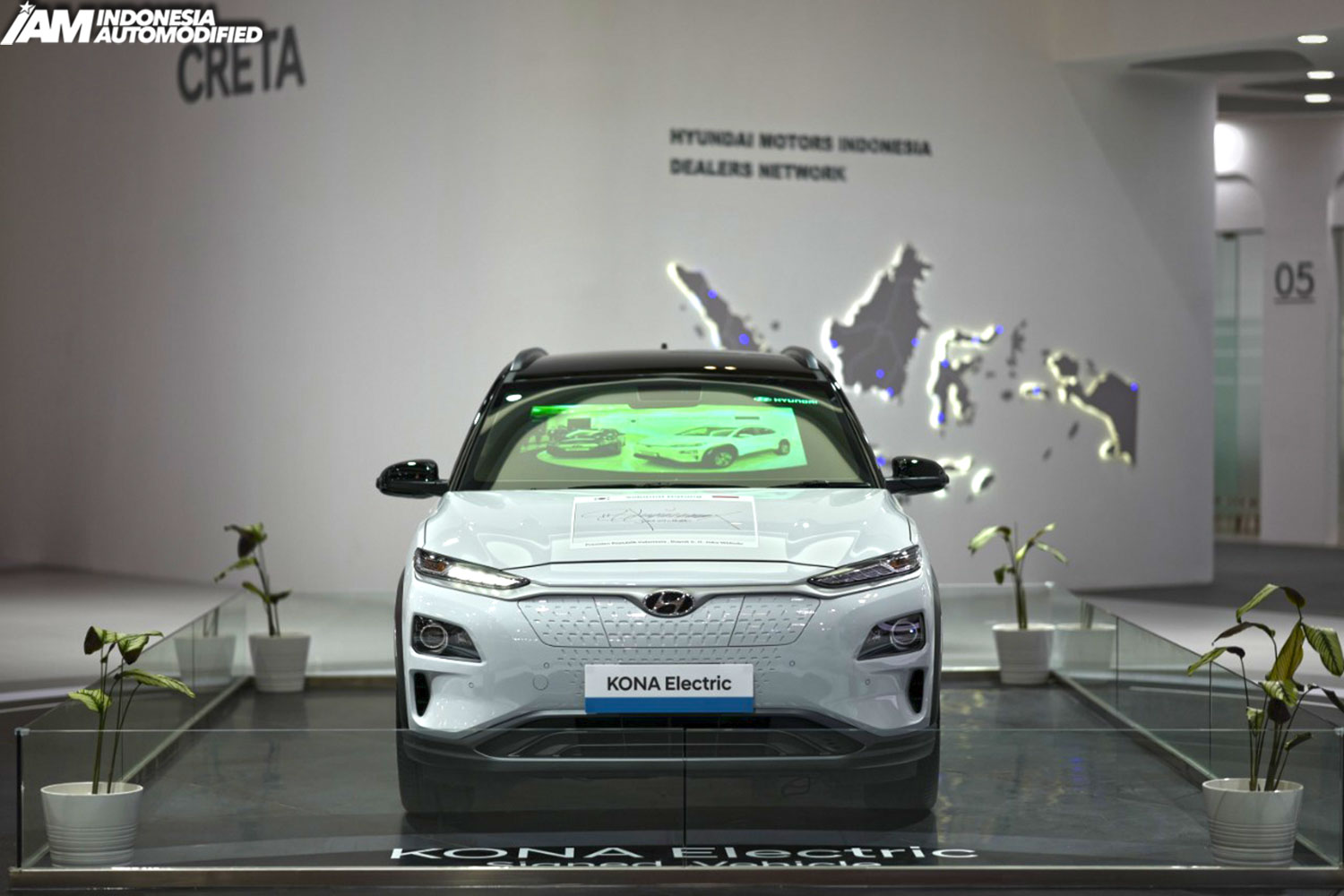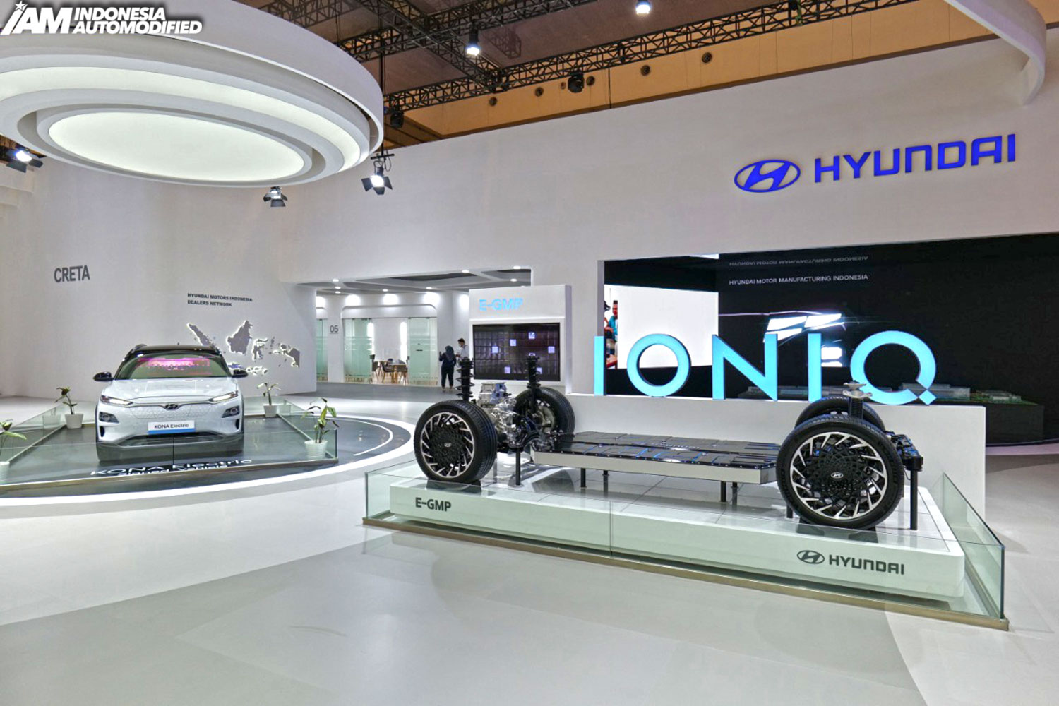 Hyundai juga memamerkan jajaran mobil listrik andalan yang memimpin pangsa pasar EV di Indonesia, KONA Electric dan IONIQ Electric; serta KONA Electric yang ditandatangani Presiden Republik Indonesia, Joko Widodo saat kunjungannya ke pabrik Hyundai, pada November 2019 lalu.