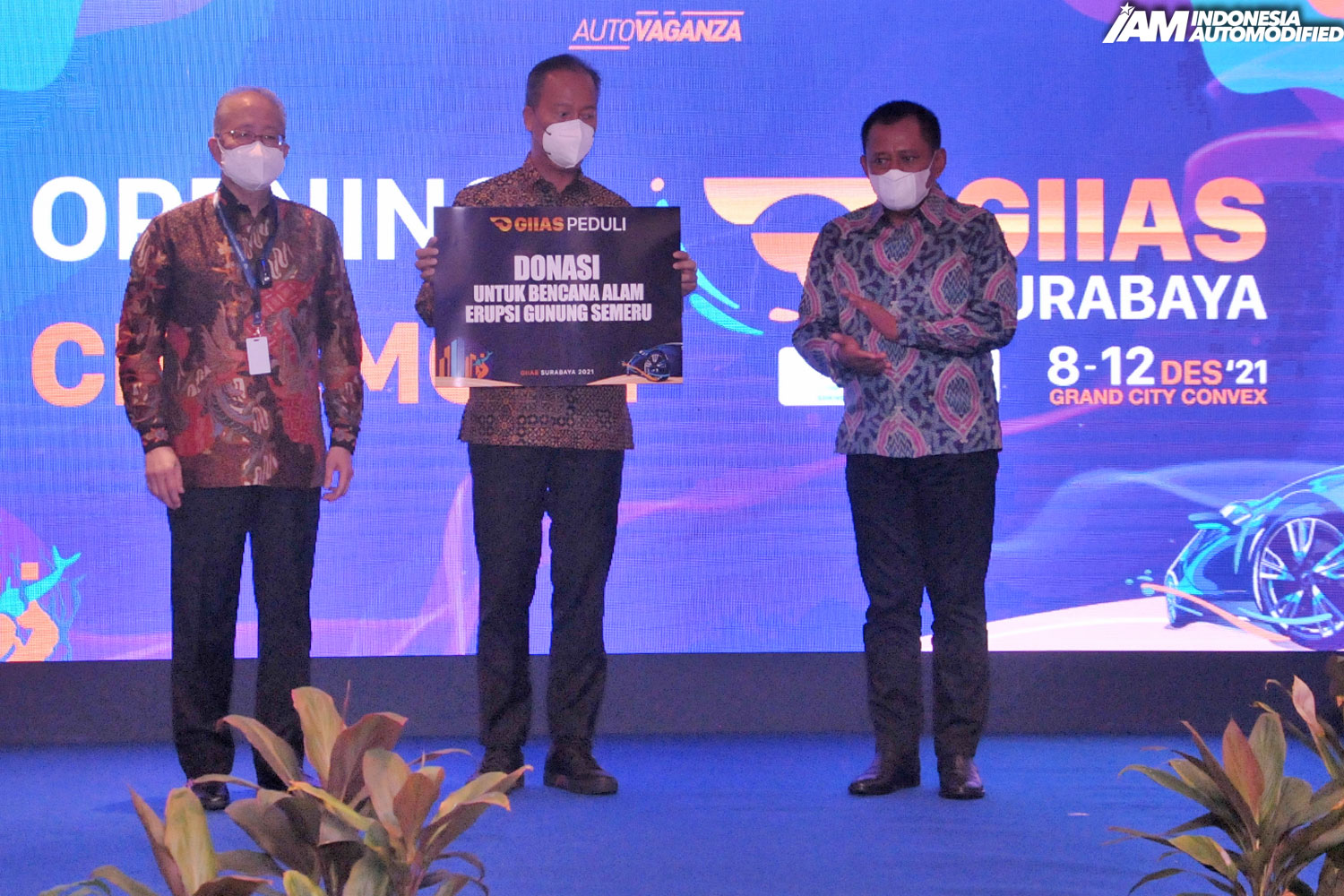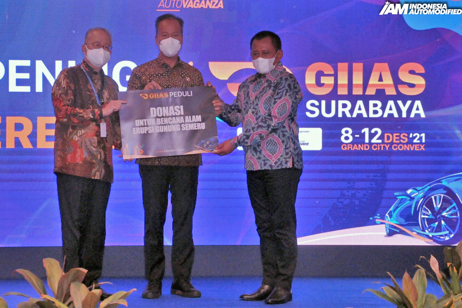 Pada acara pembukaan GIIAS Surabaya 9 Desember 2021 di Grand City Convex, Menteri Perindustrian Republik Indonesia, Agus Gumiwang Kartasasmita didampingi oleh Ketua Umum GAIKINDO, Yohannes Nangoi memberikan secara simbolis donasi dari hasil penjualan tiket GIIAS Surabaya 2021 tersebut kepada Gubernur Jawa Timur yang diwakili oleh Plh. Sekretaris Daerah Jawa Timur, Heru Tjahjono.
