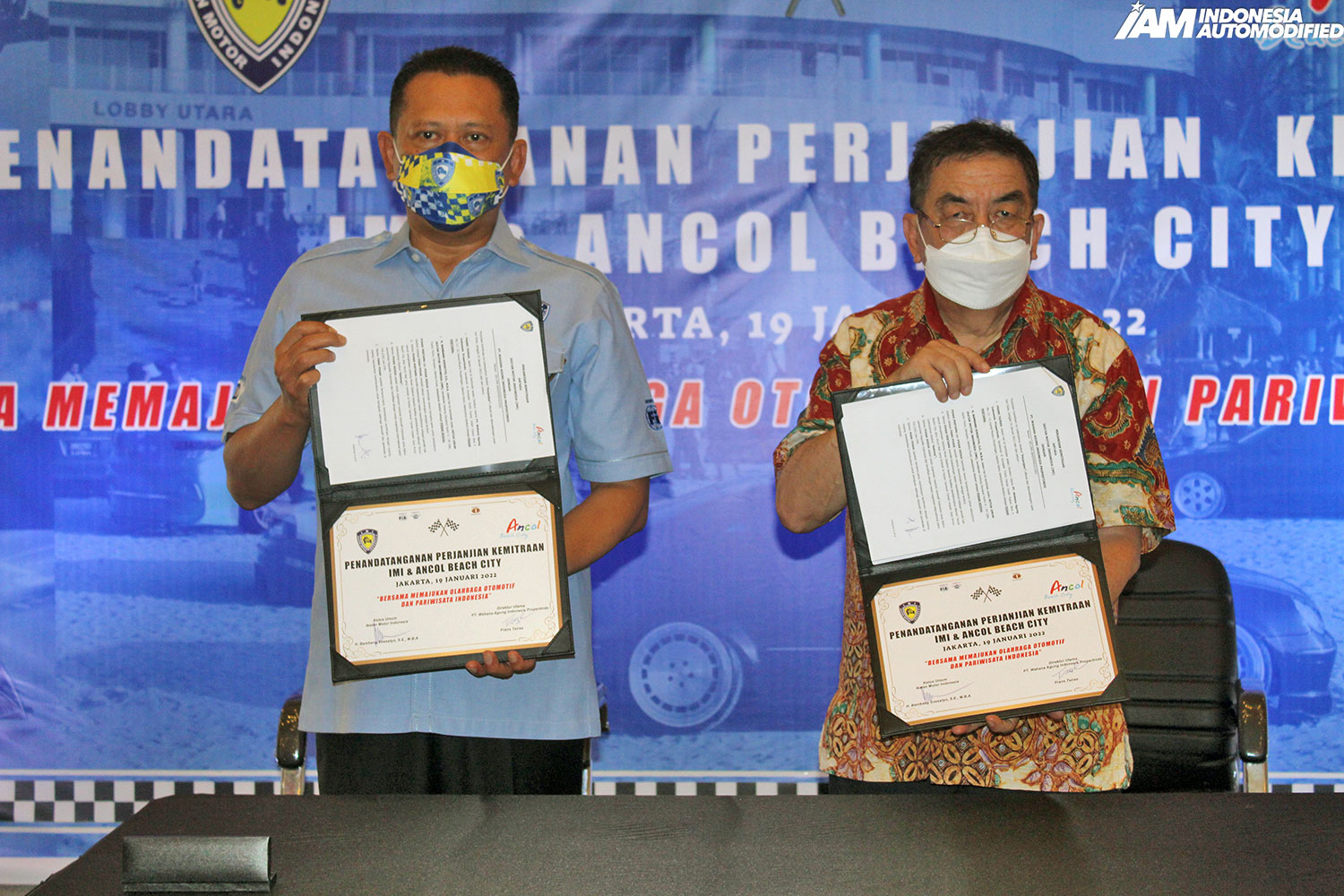 iamautomodified.com, JAKARTA – Ketua Umum Ikatan Motor Indonesia (IMI) dan Pengelola Ancol Beach City secara resmi menandatangani Perjanjian Kemitraan, di Gedung Ancol Beach City alias “Ancol Mall”, Rabu 19 Januari 2022.