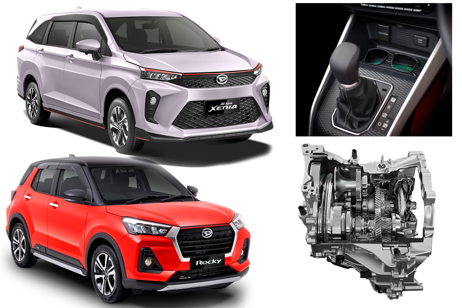 Secara umum, transmisi New D-CVT (Dual Mode Continuously Variable Transmission) memiliki keunggulan lebih halus ketika berpindah gigi dan efisiensi bahan bakar yang lebih baik. Teknologi Transmisi D-CVT ini terbilang baru di Indonesia dan sudah diaplikasikan pada mobil Daihatsu terbaru pada model Rocky, All New Xenia dan New Sirion.
