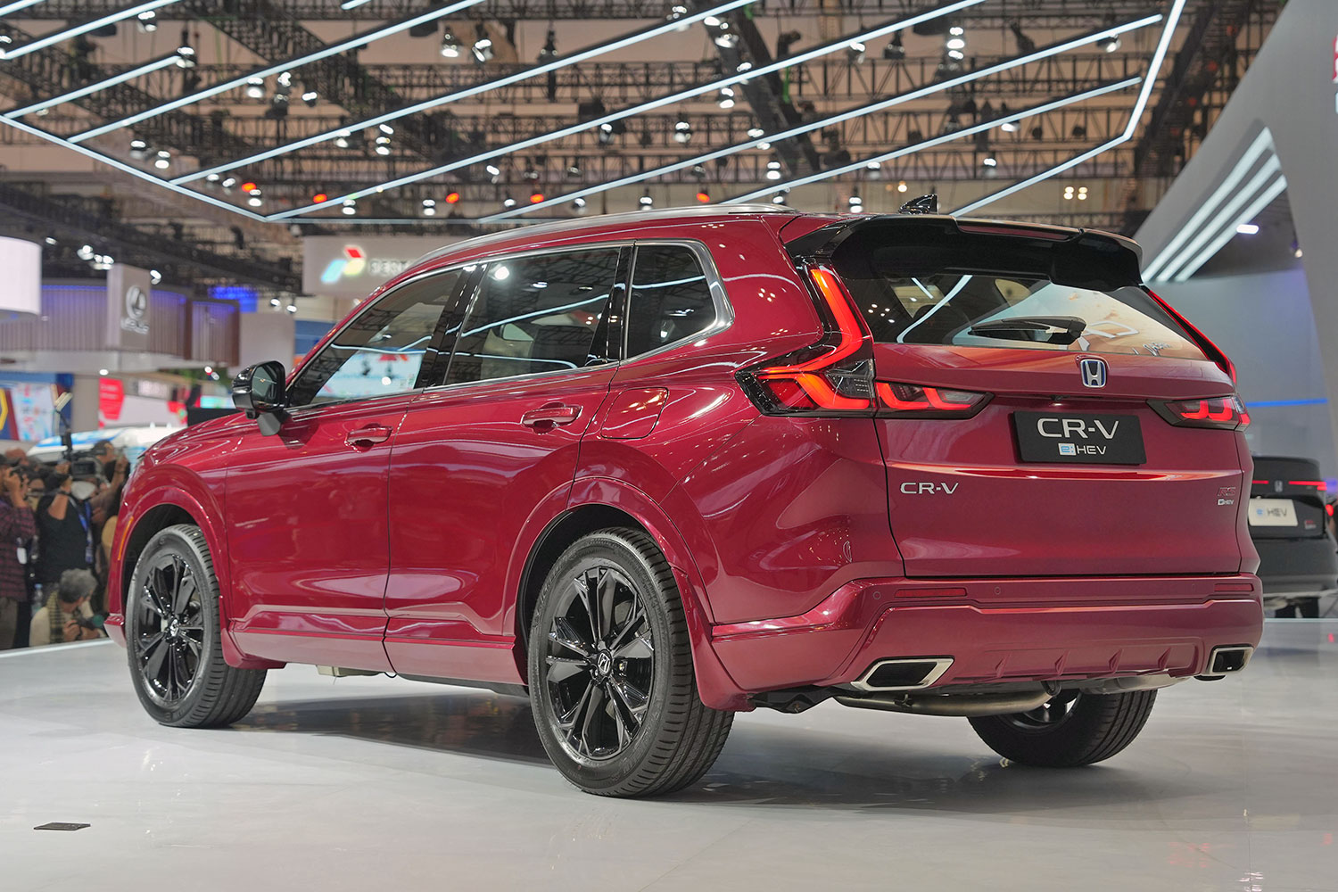 Pada ajang GIIAS kali ini, Honda menampilkan 5 unit mobil berbasis elektrik yang menggambarkan komitmen Honda untuk menawarkan solusi kendaraan ramah lingkungan untuk berbagai kebutuhan masyarakat global, termasuk di Indonesia. Selain All New Honda CR-V yang mengusung teknologi e:HEV, di booth Honda juga hadir model hybrid lainnya yaitu All New Honda Accord e:HEV.
