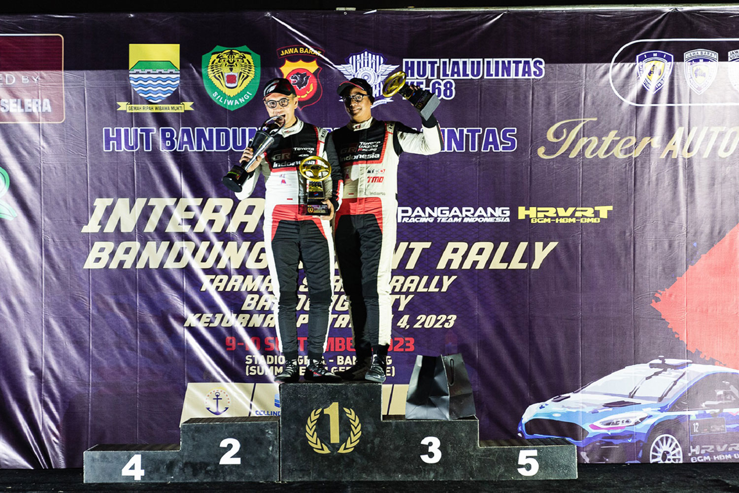 “Selamat atas keberhasilan tim Toyota Gazoo Racing Indonesia (TGRI) yang kembali menempatkan pasangan Ryan Nirwan dan navigator Adi Indiarto di podium pertama Interauto Kejurnas Sprint Rally 2023 Seri ke-4 di Bandung. Dengan semangat pantang menyerah, pembalap TGRI menjadi yang tercepat di semua special stage (SS) hingga berakhirnya sprint rally di hari Minggu. Bahkan juga menjadi satu-satunya peserta yang bisa mencatatkan hasil perolehan waktu total 12 menit. Semoga hasil positif ini akan memperbesar peluang tim TGRI dalam mempertahankan gelar juara nasional tahun ini,” kata Anton Jimmi Suwandy, Marketing Director PT Toyota-Astra Motor (TAM).