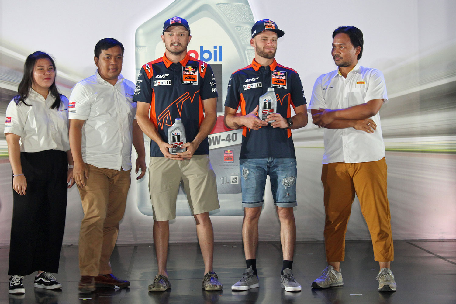 Peluncuran ini juga dihadiri langsung oleh perwakilan PT EMLI, rekan distributor, bengkel, komunitas motor, serta dua pembalap Tim Red Bull KTM Factory Racing yaitu Brad Binder dan Jack Miller.