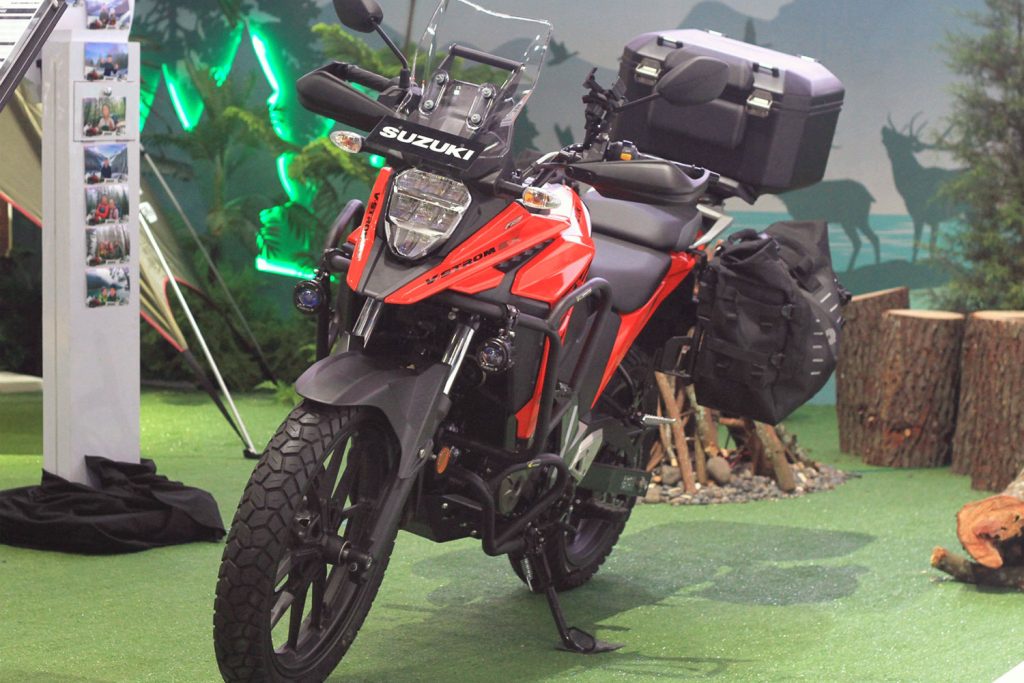 Selain mobil, Suzuki juga memboyong produk sepeda motornya yaitu V-Strom 250 SX di booth Suzuki yang berlokasi di Hall A2. Pengunjung yang berminat melakukan pembelian unit selama pameran IIMS 2024 akan mendapatkan bonus side case & top box atau cashback jutaan rupiah pada saat SPK. Selain V-Strom 250 SX, pelanggan juga berkesempatan mendapatkan cashback untuk pembelian unit sepeda motor model Address, Nex II, dan yang lainnya.