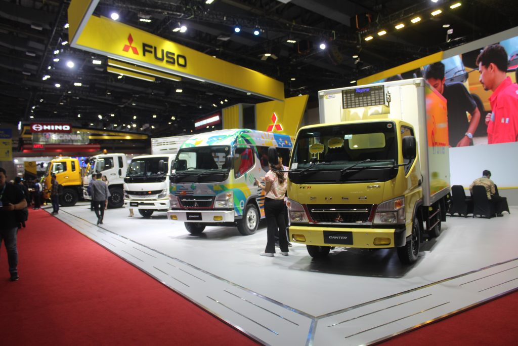 Di booth Mitsubishi Fuso yang didominasi warna kuning ini, PT. KTB menampilkan 5 model truk unggulannya antara lain ; Varian Light Duty Truck (LDT), Varian Medium Duty Truck (MDT), Tractor Head, serta Next Generation eCanter.