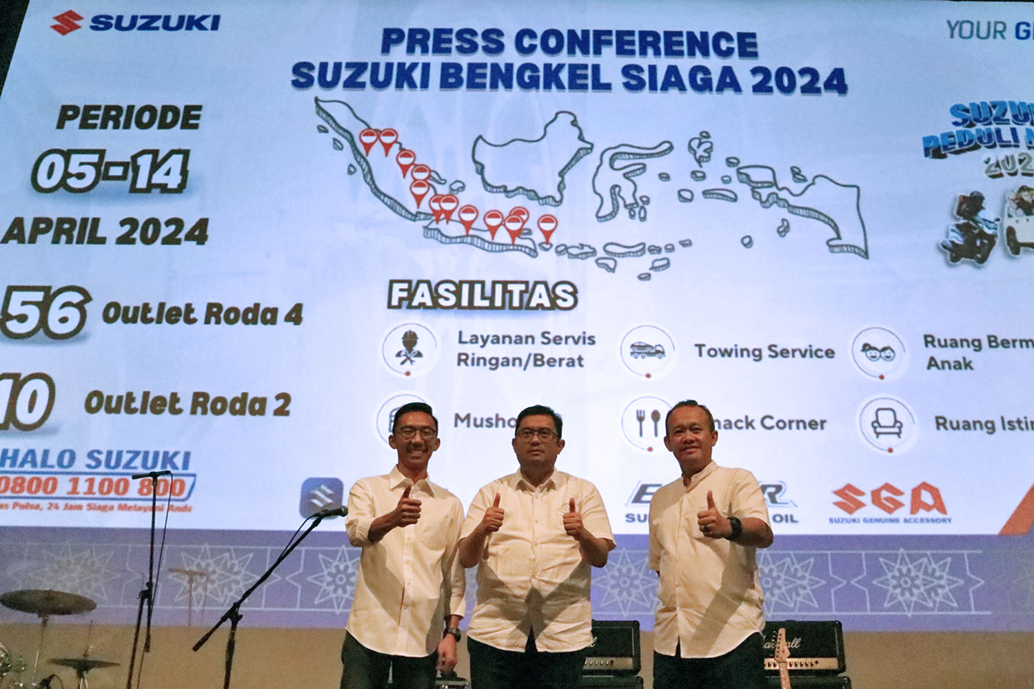 “Selain bengkel siaga, layanan Halo Suzuki Mudik Assistant yang beroperasi 24 jam juga siap siaga untuk menolong pelanggan yang membutuhkan bantuan darurat. Sebanyak 56 outlet Bengkel Siaga untuk mobil dan 10 outlet untuk sepeda motor telah disiapkan untuk menyambut perjalanan berharga pelanggan setia kami,” terang Hariadi.