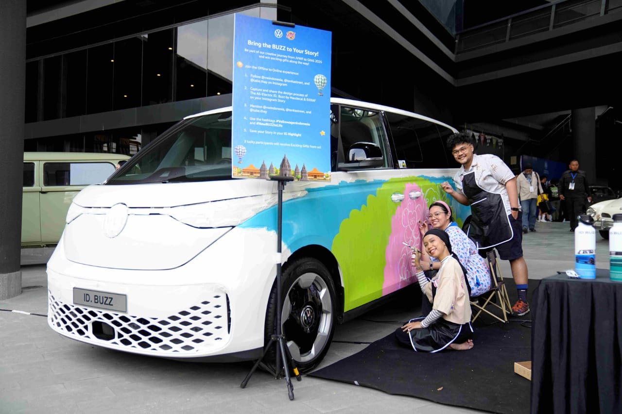 Semangat inovasi juga merambah ranah seni dan ekonomi kreatif. Untuk pertama kalinya, Volkswagen menggandeng pelaku industri kreatif Indonesia, Tabe Thay dan Tenka Street, melukis langsung di bodi ID. BUZZ — menghadirkan mobil sebagai medium ekspresi seni dalam kolaborasi dengan Kementerian Ekonomi Kreatif. Karya ini akan kembali tampil dalam gelaran GIIAS 2025 mendatang.