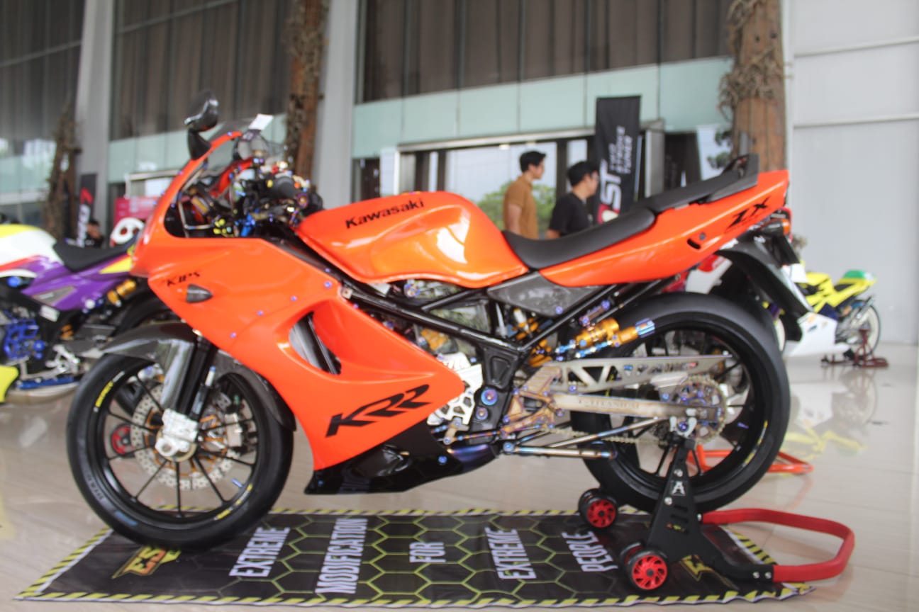 “Kalau Ninja RR SE itu kan versi lokalnya, sementara KR-JT itu lebih ke build up Thailand. Nah kita bikin motor ini jadi seperti itu,” ungkap Agung penuh semangat.