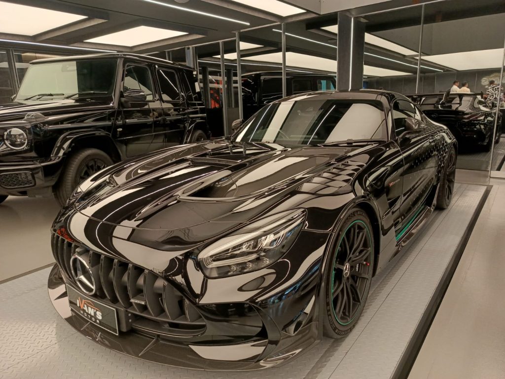 Mercedes-AMG GT Black Series “P One Edition”. Dibuat khusus untuk pemesan AMG Project One sebanyak 275 unit saja di dunia. Dengan warna eksterior dan detail mirroring dari mobil Mercedes AMG F1 W11. Ini adalah koleksi puncak untuk pecinta F1 dan Mercedes-Benz.