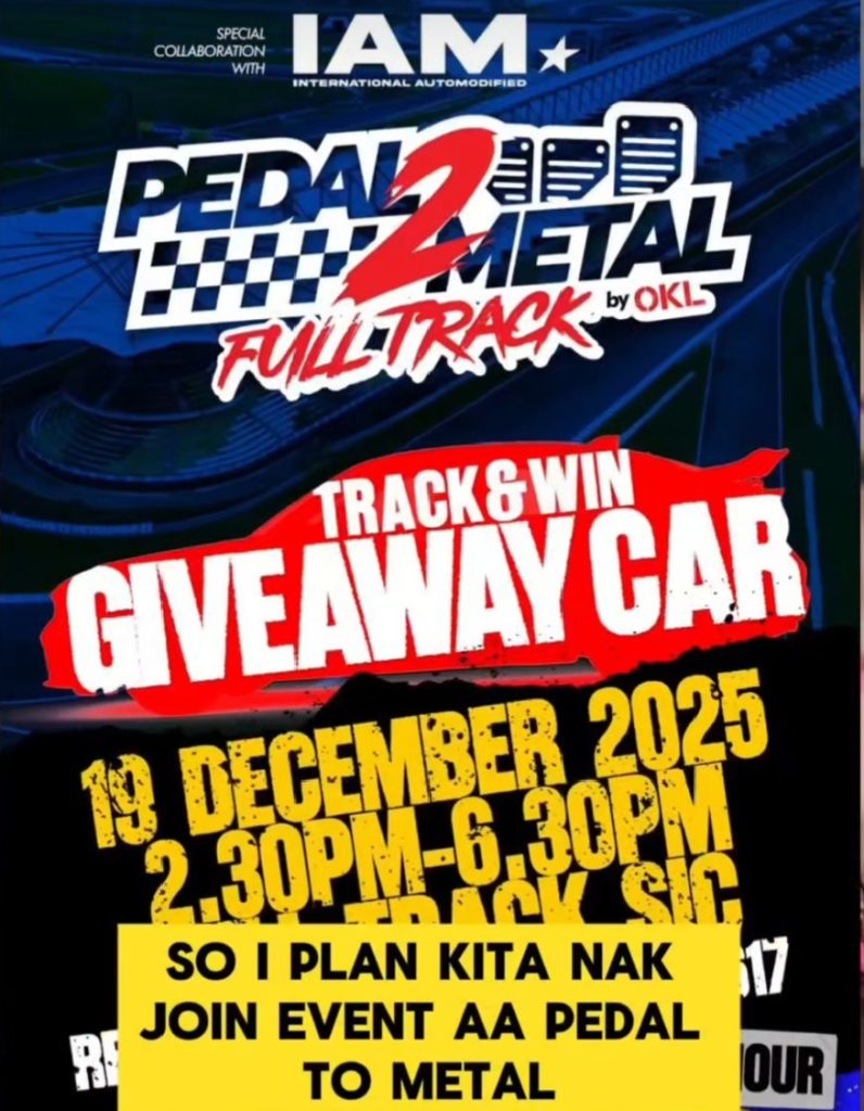 ROAD2IAM 2026 juga berkolaborasi dengan Pedal to Metal, menghadirkan nuansa berbeda di Sepang. Meski berlokasi di sirkuit internasional, kegiatan ROAD2IAM difokuskan sebagai car meet eksklusif di area pit lane, sementara sesi track day sepenuhnya menjadi agenda Pedal to Metal.