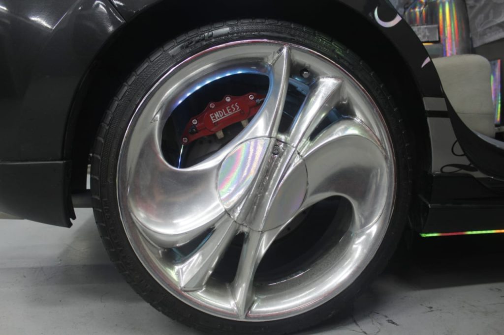 “Yang kedua termahal adalah spoke rim,” ungkapnya. Velg tersebut bukan barang biasa produksinya sudah dihentikan di Jepang. Jumlahnya terbatas, hanya sekitar 100–200 unit di dunia, menjadikannya bukan sekadar velg, melainkan artefak langka dunia modifikasi.